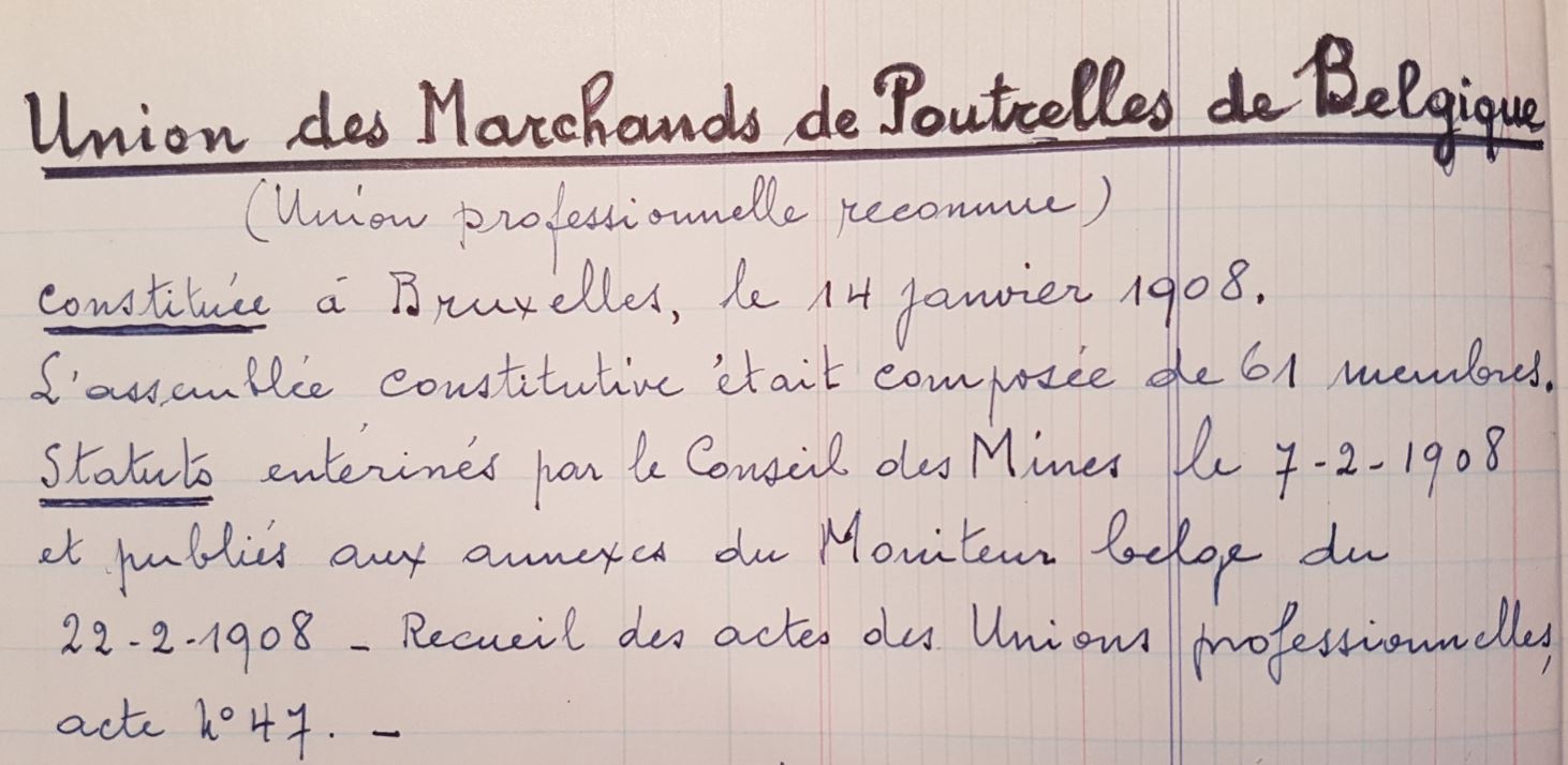 Op 14 januari 1908 werd in Brussel de Unie van Poutrellenhandelaars van Belgiƫ opgericht, waaruit de huidige Belgische beroepsvereniging van de metaalhandel is ontstaan, de naam voluit van Belmetal.